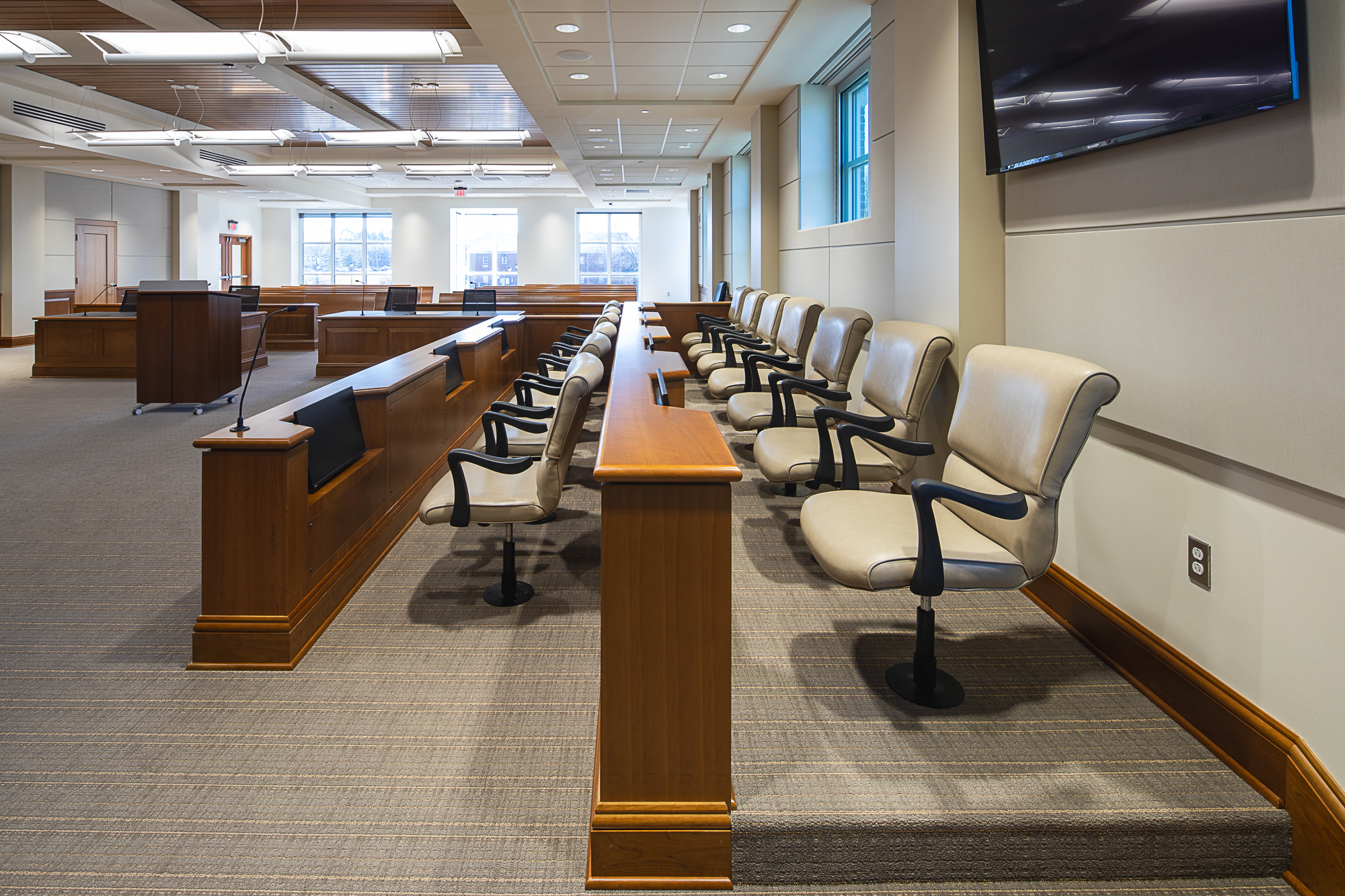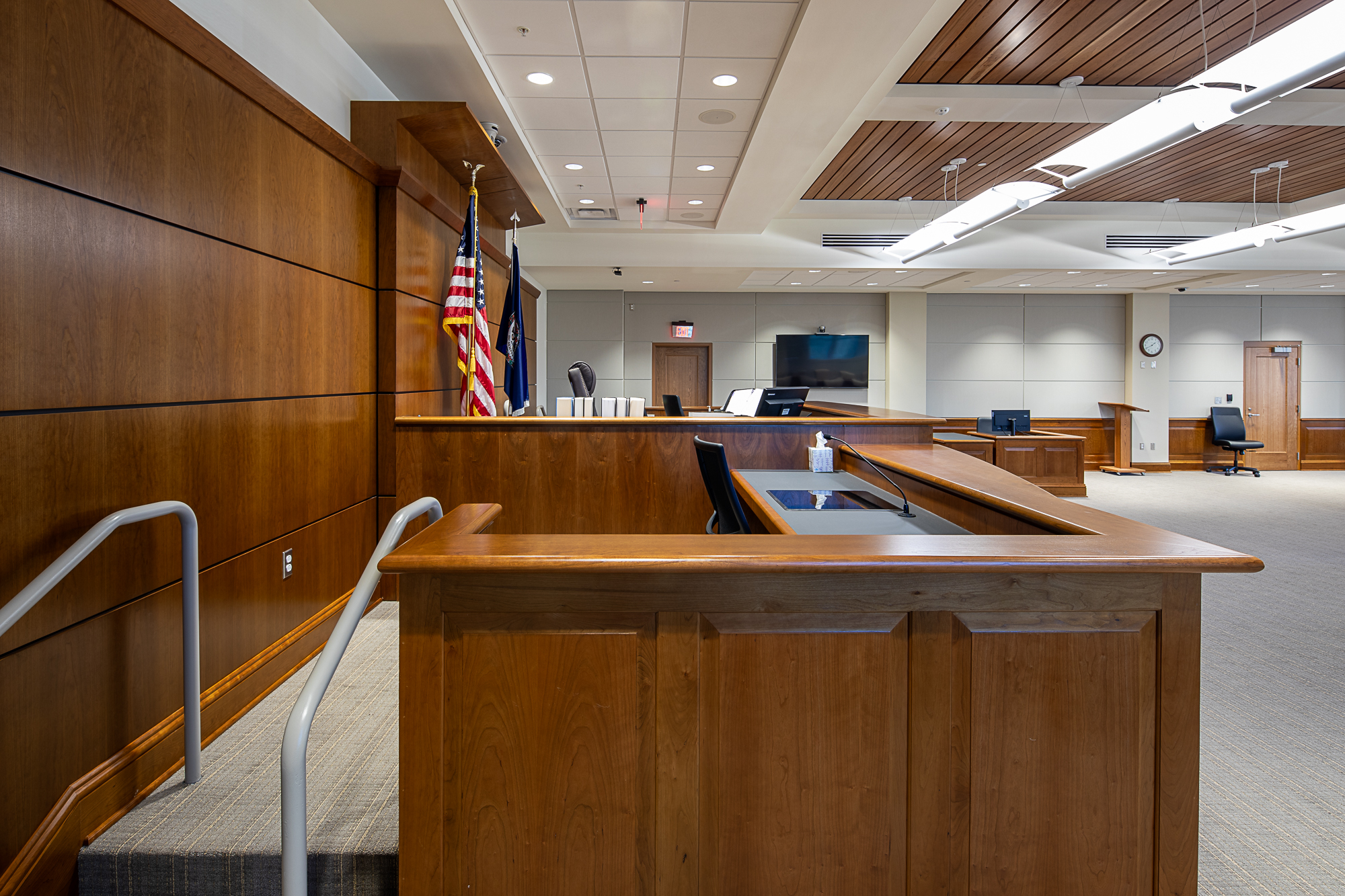 Project Manager Billy Gee and Superintendent Randy Seamster led our team on this 8,600-square-foot project, which includes a new circuit courtroom and flexible support spaces. The program also features a jury deliberation room, holding cells, multiple restrooms, corridors, and work areas.