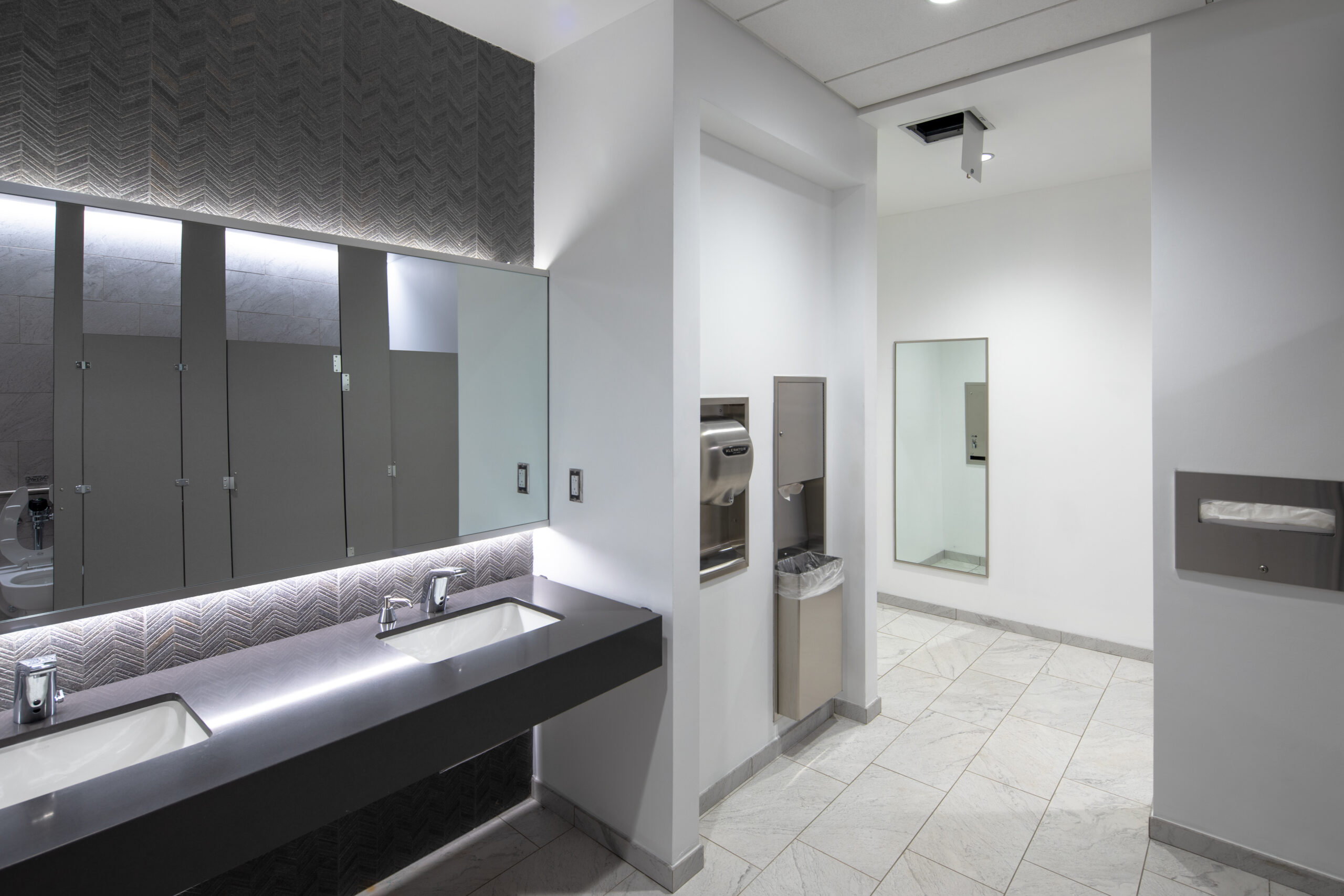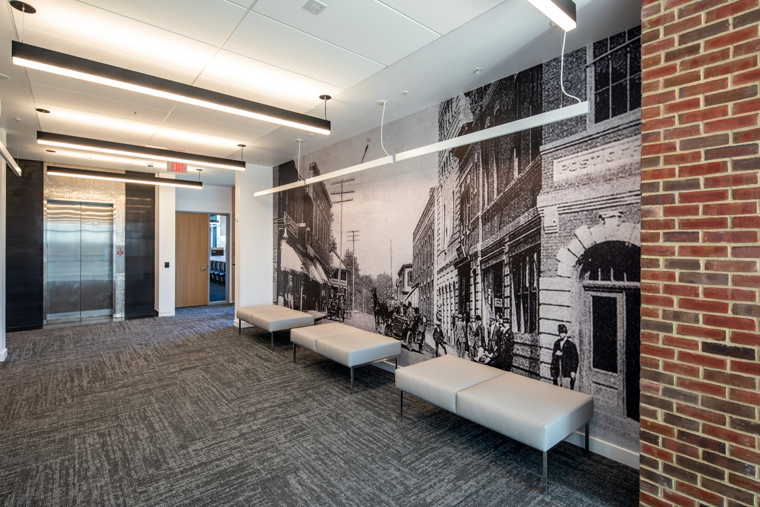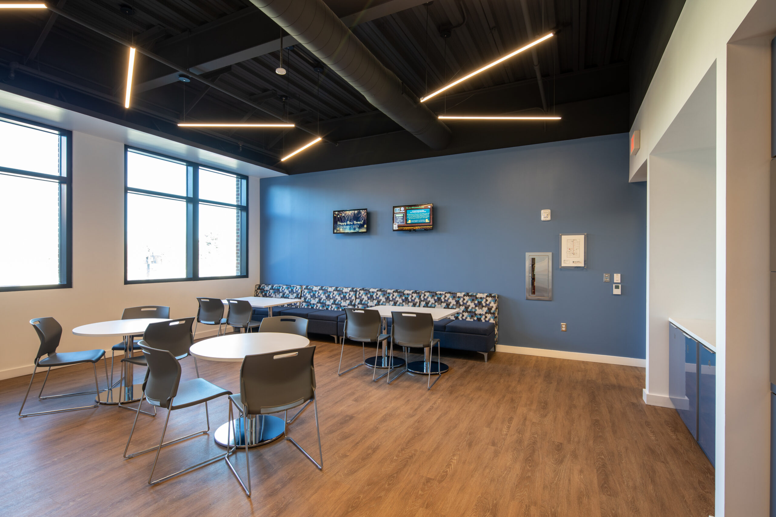 Project Manager Mike Bender and Superintendent Jeff Colvin oversaw the team on this project, which consists of three connected components: a main building, an auxiliary wing, and a structured parking deck. Key spaces support municipal operations and include offices, training rooms, meeting areas, and secure support facilities, with direct connections between the auxiliary wing and parking structure.